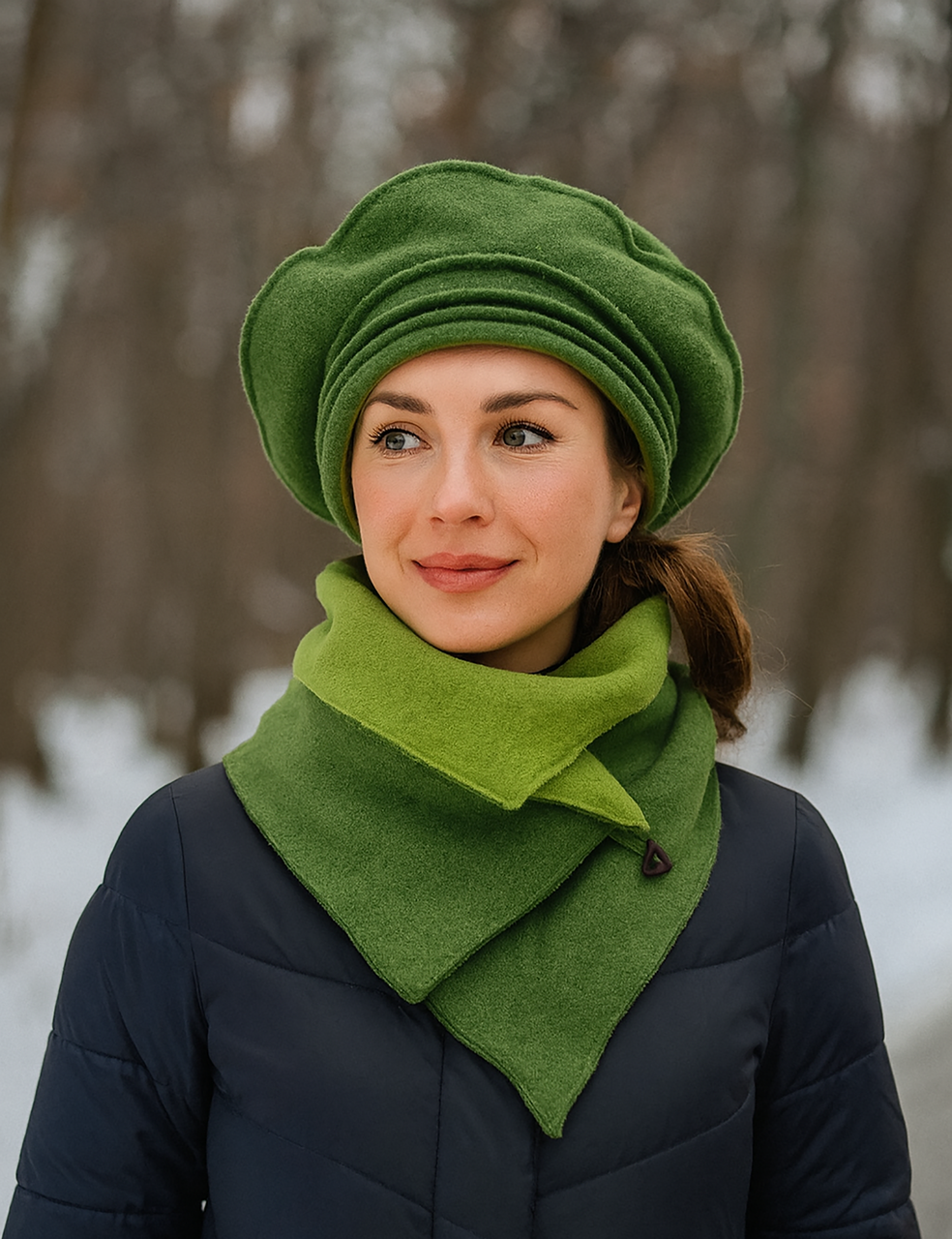 Ausgefallene Barettmütze kombiniert mit Kurzschal