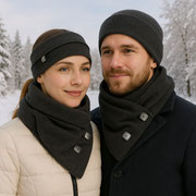 Stirnband Wendeschal Fleece Set kiwigrün schwarz P