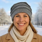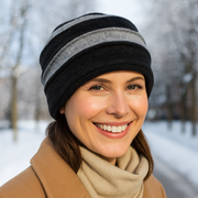Die Damen Wintermütze aus gewalkter Wolle ist das perfekte Accessoire für kalte Tage.