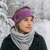 Das Stirnband ist gefüttert mit hochwertigem Fleecestoff in Lila/beere