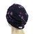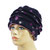 leichter Topfform in dunkelblau mit Flieder farbenen Tupfen.
